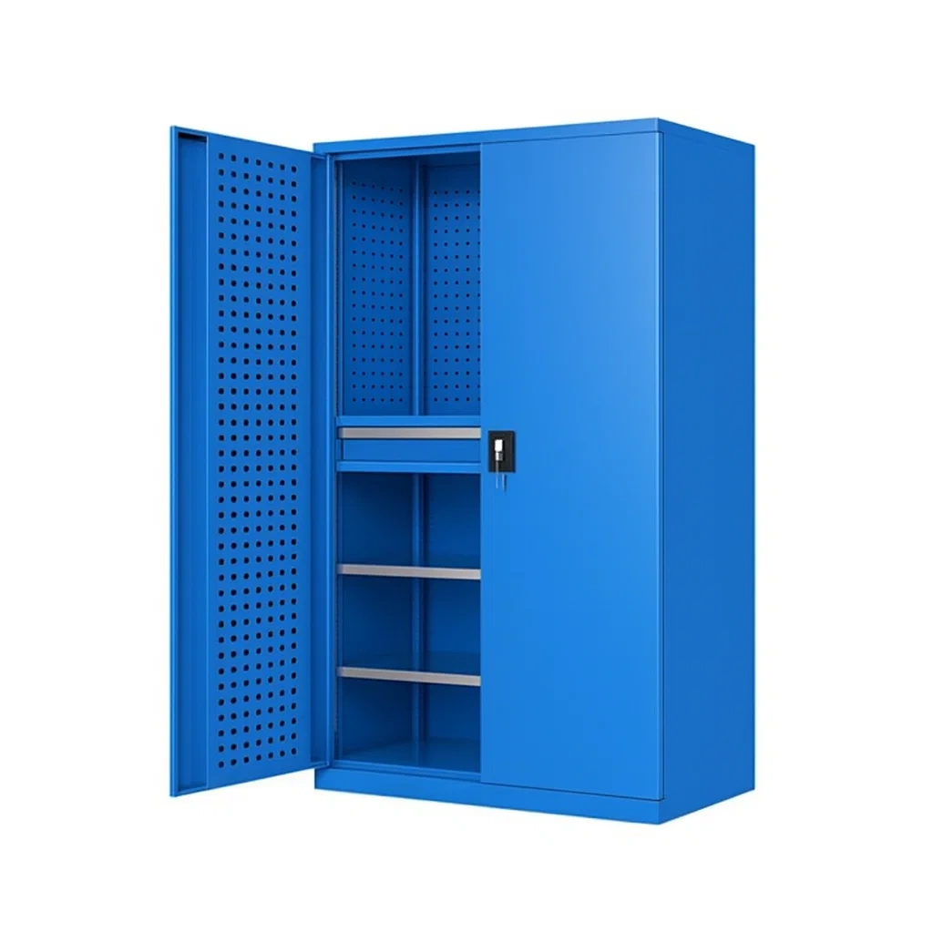 Armoire à outils de rangement en métal bleu avec portes perforées