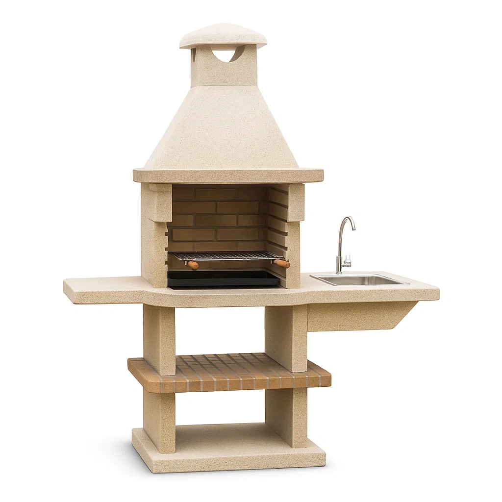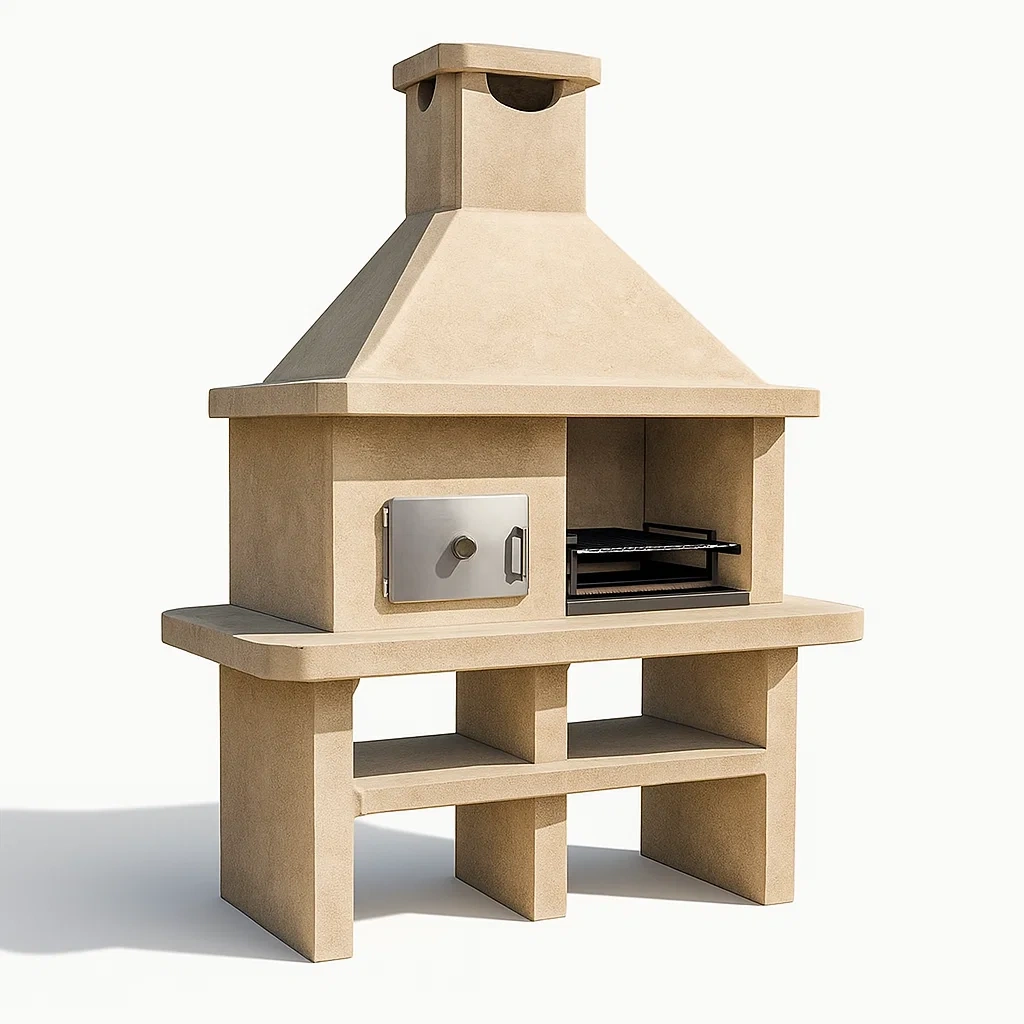 Barbecue réfractaire avec cheminée en inox, beige/marron, 180x90x60 cm