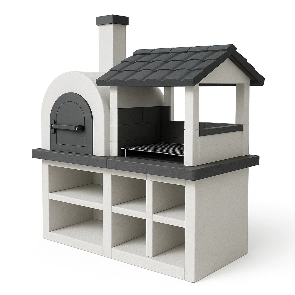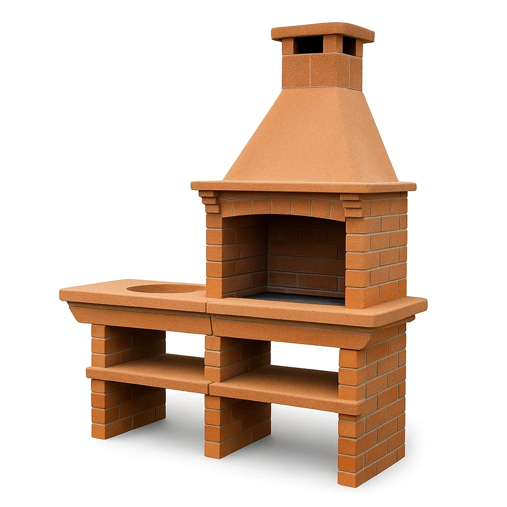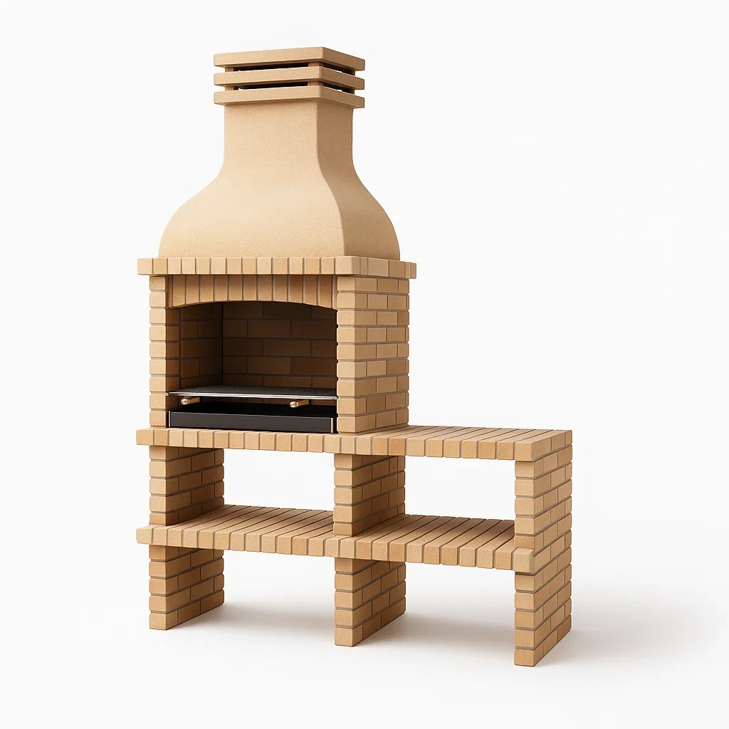 Barbecue réfractaire brun avec grille en acier inoxydable