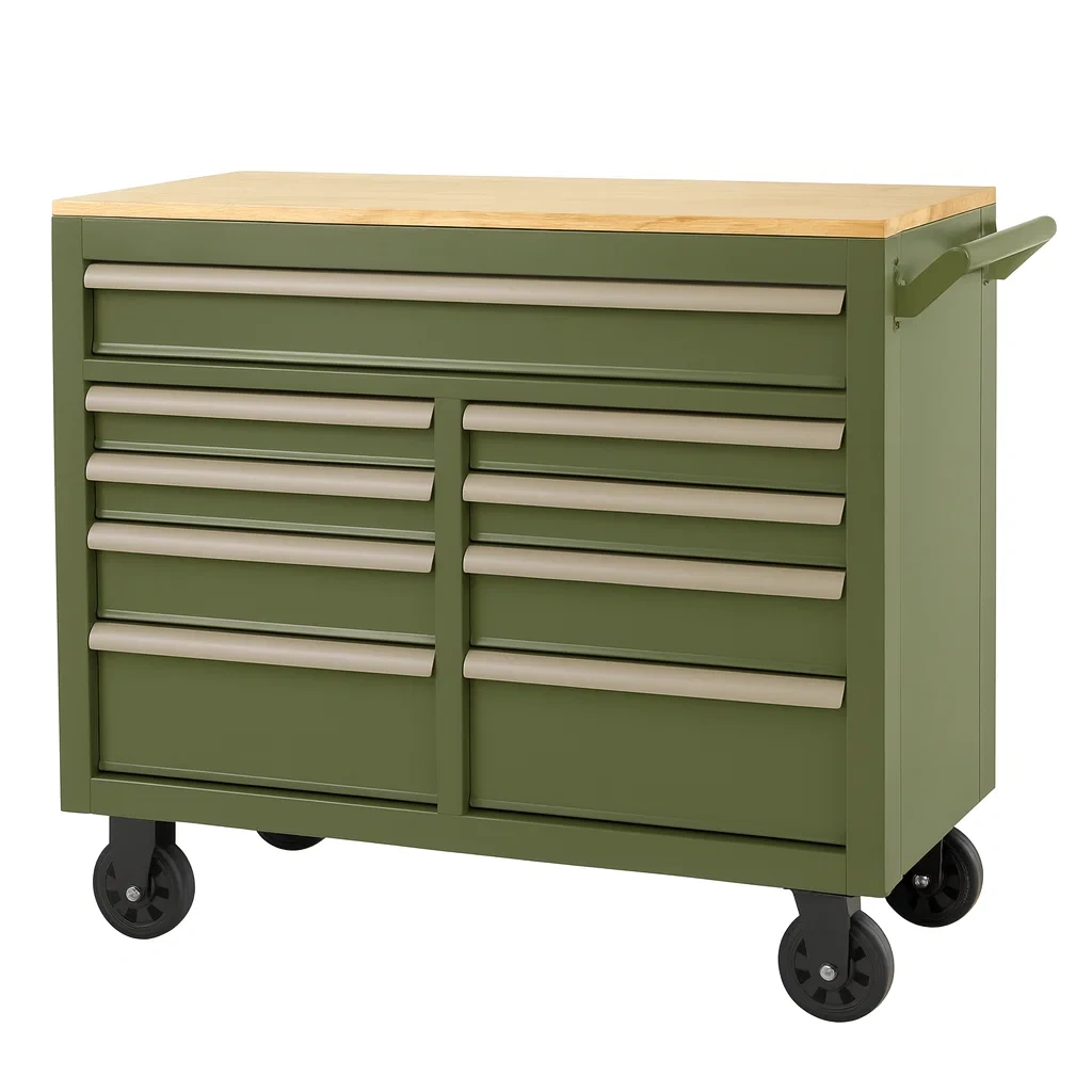 Équipé de 9 tiroirs coulissants et roulettes pour un déplacement facile.