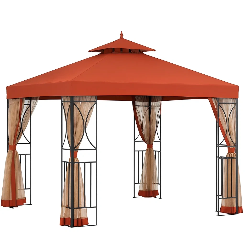 Structure : Pavillon carré avec toit en polyester et rideaux en polyester